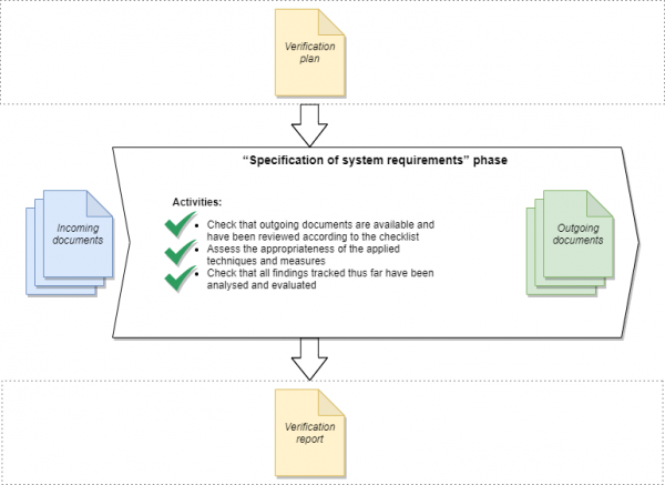 Figure 4: Activities and relevant documents for verifying a phase (own diagram)